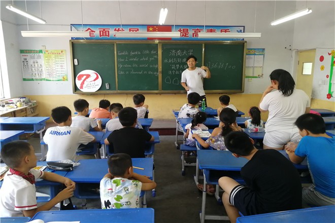 7月18日,bat365官网登录入口“筑梦天使”济宁社会实践团在倪王庄村小学开展英语趣味小课堂,在当地村委的大力宣传和团队成员的共同努力下,本次支教活动取得良好的成效。