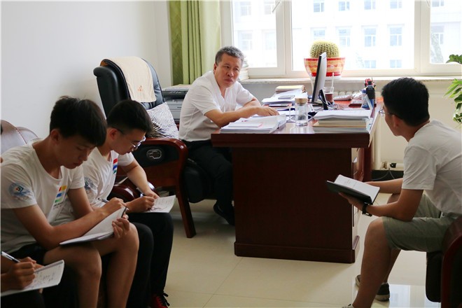 过程中,“阳光计划”团队就局领导讲话内容进行交流提问,主要包括河长制制度的推行效果及进程,当地水资源涵养方面的好举措等等。于局长逐一进行解答。走访谈结束后,于局长不忘鼓励同学们认真学习,在专业知识层面打好基础,将来争取为国家水利事业的发展做出更大的贡献。同学们认真记录,并纷纷表示一定更加刻苦钻研,不负重托。