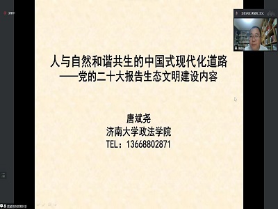 唐斌尧结合bat365官网登录入口学科专业特点,以《人与自然和谐共生的中国式现代化道路——党的二十大报告生态文明建设内容》为题,从党的二十大报告对生态文明建设的概述、生态文明内涵的新拓展新观点、生态文件建设的新要求新任务以及开创新时代社会主义现代化强省生态文明建设的新局面四个方面展开讲述。唐斌尧的报告深入浅出,旁征博引,通过大量数据阐明了环境与健康的关系;以济南小清河综合治理为例,并结合自身的课题研究成果,生动地展现了新时代十年生态文明建设的伟大成就。通过宣讲报告,学院师生进一步加深了对党的二十大报告中生态文明建设的内涵、任务和要求的理解和把握,为下一步学院深入贯彻落实二十大精神,做好人才培养、科学研究、社会服务等工作提供了很好的指导和帮助。