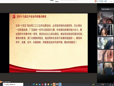 同时bat365官网登录入口学生组织开展线上沙龙学习五中全会精神。学生干部积极发表对十九届五中全会精神的认识,其中有学生干部提出经过新中国70多年的艰苦奋斗,经过改革开放40多年的创新发展,我国迎来了前所未有的发展机遇。困难和挑战可以有千条万条,但上下同心实现发展的决心只能有一条,那就是全面抢抓我国宝贵的重要发展战略机遇期,全面转化“十四五”规划目标和远景目标,认真落实十二个方面的战略举措,创造性地谋划发展现代化发展道路,始终坚持党的全面领导、注重发挥中国特色社会主义的制度优势,始终坚持以人民为中心、坚持新发展理念、坚持深化改革开放、坚持系统观念,形成推动发展的强大合力,走出一条具有中国特色的社会主义现代化发展道路。