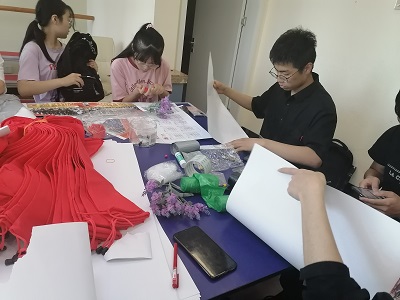上午9点志愿者们准时在仁贤社区门口集合,清点人数。随后,志愿者们听从社区工作人员的安排,有序地投入到了各自的工作中。在活动开展过程中,志愿者们分成了三个组。一组的志愿者提供环保服装的制作思路;二组的志愿者对衣服的颜色搭配和样式进行细节设计;三组的志愿者进行最后的制作工作。为让小朋友能亲身参与到环保活动中,感受环保活动的乐趣,在制作衣服的过程中志愿者们对衣服进行了留白,这样不但使小朋友们享受自己创作衣服的乐趣,而且表达出了他们对环境保护的独特理解。经过志愿者们几个小时的努力,环保服装制作顺利完成。
