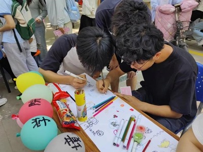 活动以游园会的方式进行,参与活动的同学从游园会起始点出发,挑选并参与各个学院所设立的特色活动项目、获得印章,来完成“阳光心理疗愈卡”打卡任务、赢取奖励。我院所设立的项目是“绘画接力,将爱传递”自由绘画活动,要求参与者现场绘制符合当下心情特点的简笔画,记录心理感受、抒发内心情感。