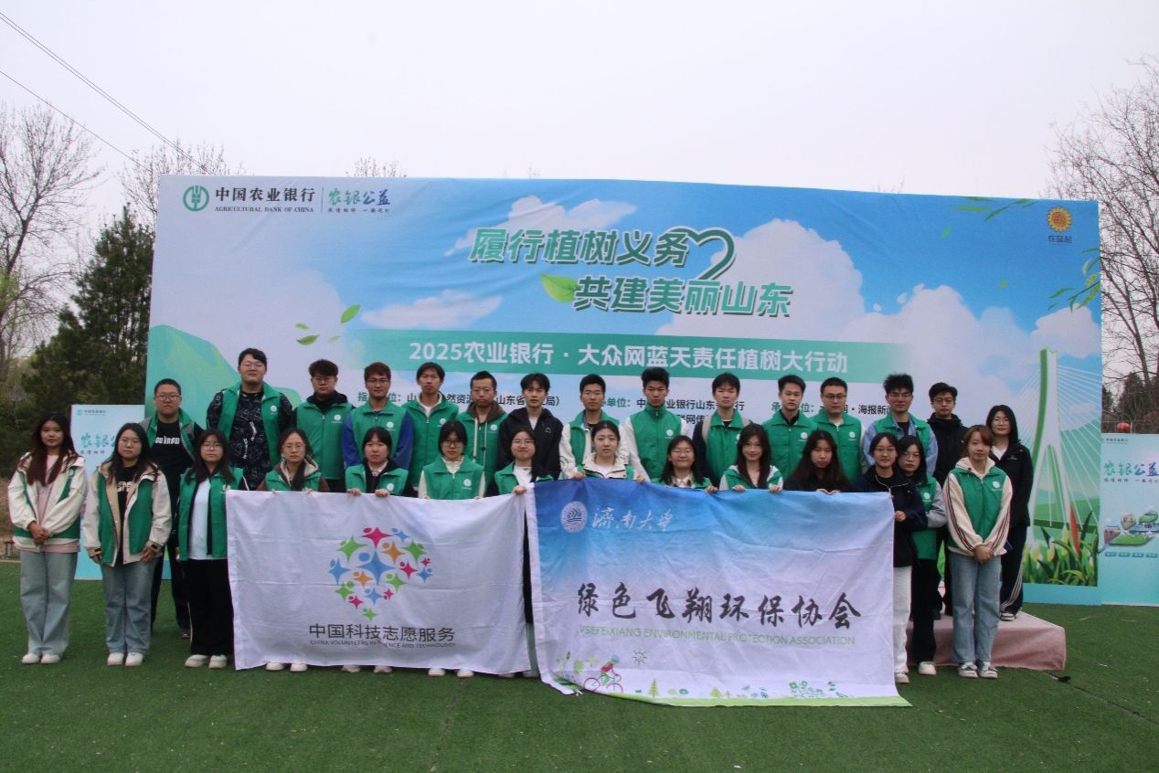 春风拂绿,万象更新。3月23日上午,由山东省自然资源厅指导、农业银行山东省分行与山东省互联网传媒集团联合主办的“2025农业银行·大众网蓝天责任植树大行动”在济南济西高科农业园举行。bet356在线官方网站绿色飞翔环保协会作为高校环保社团代表受邀参与并荣获绿色公益植树尽责证明荣誉证书,与各界志愿者共同投身黄河沿岸植树护绿行动。