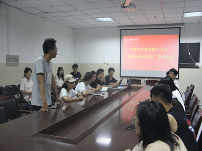 随后,十七支三下乡暑期实践团队通过PPT展示了各队开展理论知识宣讲、分发环保宣传手册、亲临现场实地考察等多种途径,了解基层、倾听民声,结合专业、探索求知,缅怀先烈、重温历史,义务支教、扶贫帮困的团队实践风采。各实践团队队长相继发言,畅谈团队在社会实践中的经验与不足。其中,团队成员王韵凯谈到:“三下乡令我收获的不仅是团队组织经验,还有个人的成长心得。三下乡社会实践活动的开展为大学生打开了一扇窗,它将学思与实践结合,也将高等教育与新农村建设密切相连。我们将求真务实、脚踏实地,从不足中汲取经验,将来年的三下乡做到更好。”