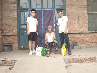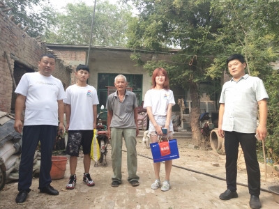 我们的帮扶地点选在了王九村和双赢村,下午三点半,在信发街道办事处刘波主任和王九村村委书记王培水书记的带领下我们先来到了王九村,王九村书记王培水先向我们介绍了村内的情况,然后带我们来到了王九村杨丽奶奶家里,奶奶的孩子都在外地务工,所以家里就奶奶一人,并且奶奶患有比较严重的腰椎病,对日常生活造成了极大的困扰,我们通过王书记了解到,国家每年会给奶奶拨款九千余元,可以完全满足奶奶的日常生活需要,并且村里还给奶奶翻新房屋。我们给奶奶送去牛奶和大米后,奶奶热情的将我们送到了大门口。第二个政府扶贫对象是双赢村王惠萍奶奶,由于他的房子年久失修,因此她搬到了前面的一栋房子,我们给她送去了大米和牛奶,王书记临走前对他说,有困难记得和村里说;随后我们到了王志华叔叔家,他患有严重的尿毒症,左眼已经失明,但即便是在这种情况下,他的妻子仍然选择不离不弃的照顾他,并没有因为他重病就抛弃他,这对我们感触非常大,政府同样也是为他提供了大力的帮助,每年还拨款为他治疗。第四户是五保户马保全爷爷,他老来无亲,但是受政府补助,生活艰难维持,我们给他送去了大米和牛奶,临走时,马保全爷爷送我们出门并热情地塞给我们一个西瓜,吃着西瓜,炎热的夏日也变得清爽起来。