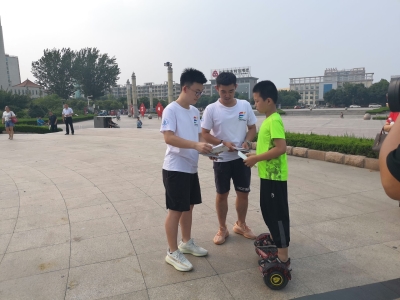 7月17日,bat365官网登录入口“初晓行动”实践团来到聊城市茌平县人民广场开展环境保护宣传活动,并向当地市民发放“守护多样之美”宣传册。