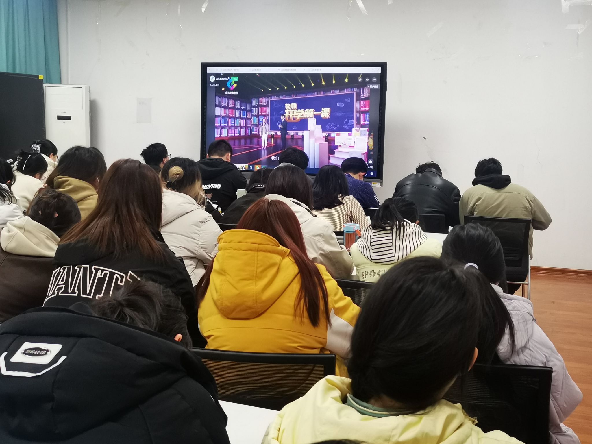为贯彻落实习近平总书记关于弘扬教育家精神的重要指示精神,引领全院教师和师范生践行教育家精神。3月6日晚,bat365官网登录入口组织全体教师、师范生收看2024年春季学期教师“开学第一课”特别节目直播,部分师生代表在九教105集中收看。